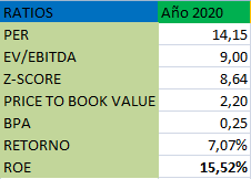Principales ratios: