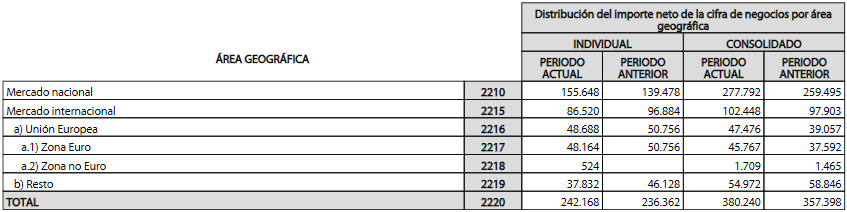 Declara unas ventas de 380,24 millones de Euros, con un incremento de 22,84 Millones, un 6,39% más que en el ejercicio anterior.