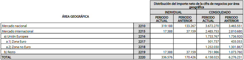 Declara unas ventas de 6.158 millones de Euros, con un decremento de 118 Millones, un 1,88% menos que en el ejercicio anterior.