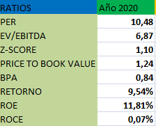 Deuda financiera Neta / Ebitda = 3,43 (recomendable, inferior a 2)