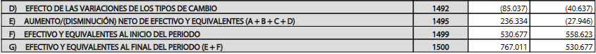 Resumen del Estado de Flujos de Efectivo de Prosegur: