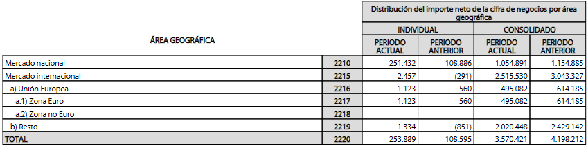 Declara unas ventas de 3.570 millones de Euros, con un decremento de 628 Millones, un 14,95% menos que en el ejercicio anterior.