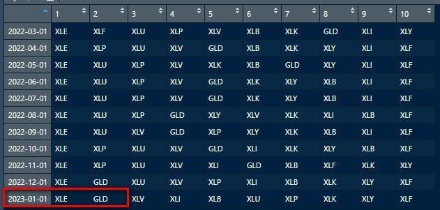 Como veníamos avisando el mes anterior, el ORO (GLD) sigue ocupando la segunda posición y esta vez el sistema le otorga puntuación positiva, por lo que es momento de invertir en el. Esto desde luego no es un buen presagio para 2023.