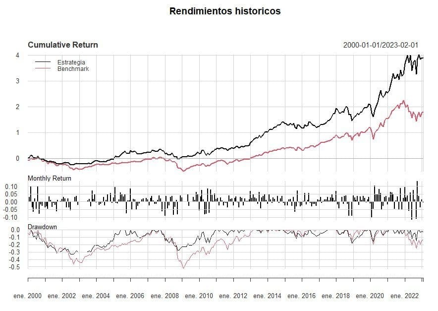 Es cierto que en el mercado hay demasiada noticia negativa y mucho temor a 2023 y sin embargo Enero ha sido de fuerte rebote. También es cierto que tanto este sistema como la mayoría de sistemas de trading van con retraso, es decir, que cuando se producen los giros de mercado sufren ya que van a «rebufo» de los acontecimientos y tardan en adaptarse al nuevo movimiento. Sin embargo, que haya un mes de gran rebote cuando el mercado lleva acumulada una gran caída no es garantía de giro de mercado, sino más bien de una bull-tramp. Esperemos a ver como evoluciona el mercado en los próximos meses. El sistema sigue aportando benéficos a pesar de no haber cogido este gran rebote por haber permanecido el mes de Enero con el 50% en liquidez.