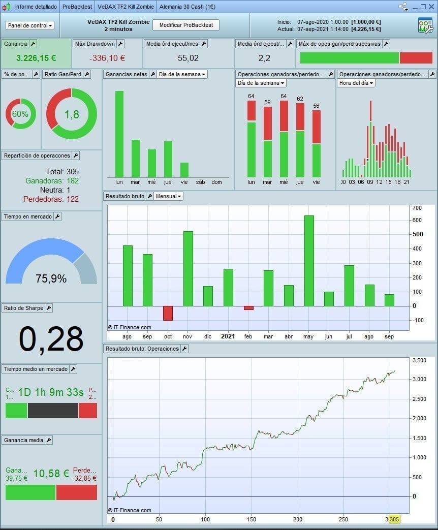 Dentro de la Comunidad de Faro Bursátil llevamos más de 10 meses sacando rentabilidad al Robot VeDAX TF2. Es una estrategia muy sencilla, adaptada de otra anterior que operaba en una temporalidad mayor. La presentamos hace unas semanas AQUI.